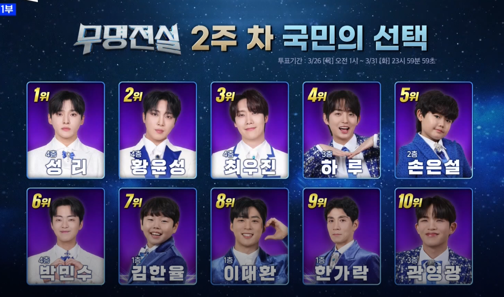 현재 기준으로 공개된 무명전설 투표순위 흐름을 보면 상위권과 중위권의 경쟁이 점점 치열해지고 있습니다.